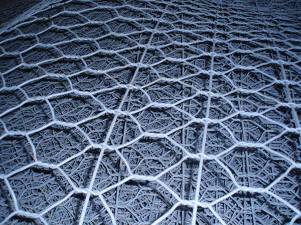 包塑的重型六角網(wǎng)是包塑絲編織的六角網(wǎng),用于制作石籠網(wǎng)網(wǎng)箱箱和直接固定在山坡以及邊溝防護水土流失、泥石流和山上石塊滾落。包塑重型六角網(wǎng)的原料鐵絲是涂敷了PVC塑料涂層的鐵絲,塑料涂層厚度大約在 1mm 左右。